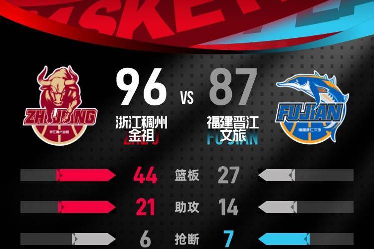 进入第四节,冯洺臻率先跳投得分,陆文博马上回应三分,约翰逊内线再添分,浙江领先优势扩大到16分。皮特森突然发力,连续两次跳投命中后投进三分,又通过罚球连续得分,一口气连追8分,将分差缩小到10分。约翰逊两罚全中再加跳投得分,稳住了领先位置。邹阳连续得分帮助福建继续追分,分差缩小到9分,李悦洲接约翰逊助攻命中三分,浙江重新拿到11分领先。最后邹阳上篮得分,全场比赛结束,浙江稠州金租主场击败福建晋江文旅。